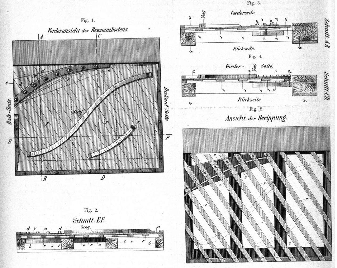 Erklärung zu dem Patent, den Resonanzboden betreffend, bei dem die Instrumente eine größere Tonfülle und eine Vervollkommnung der Klangfarbe erzielt werden soll, aus dem Jahre 1892.